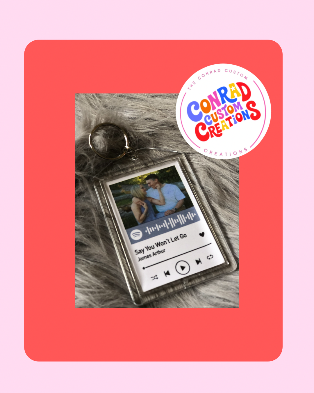 Please email a photo and your desired song for the keychain at theconradcustomcreations@gmail.com with your name and order number.