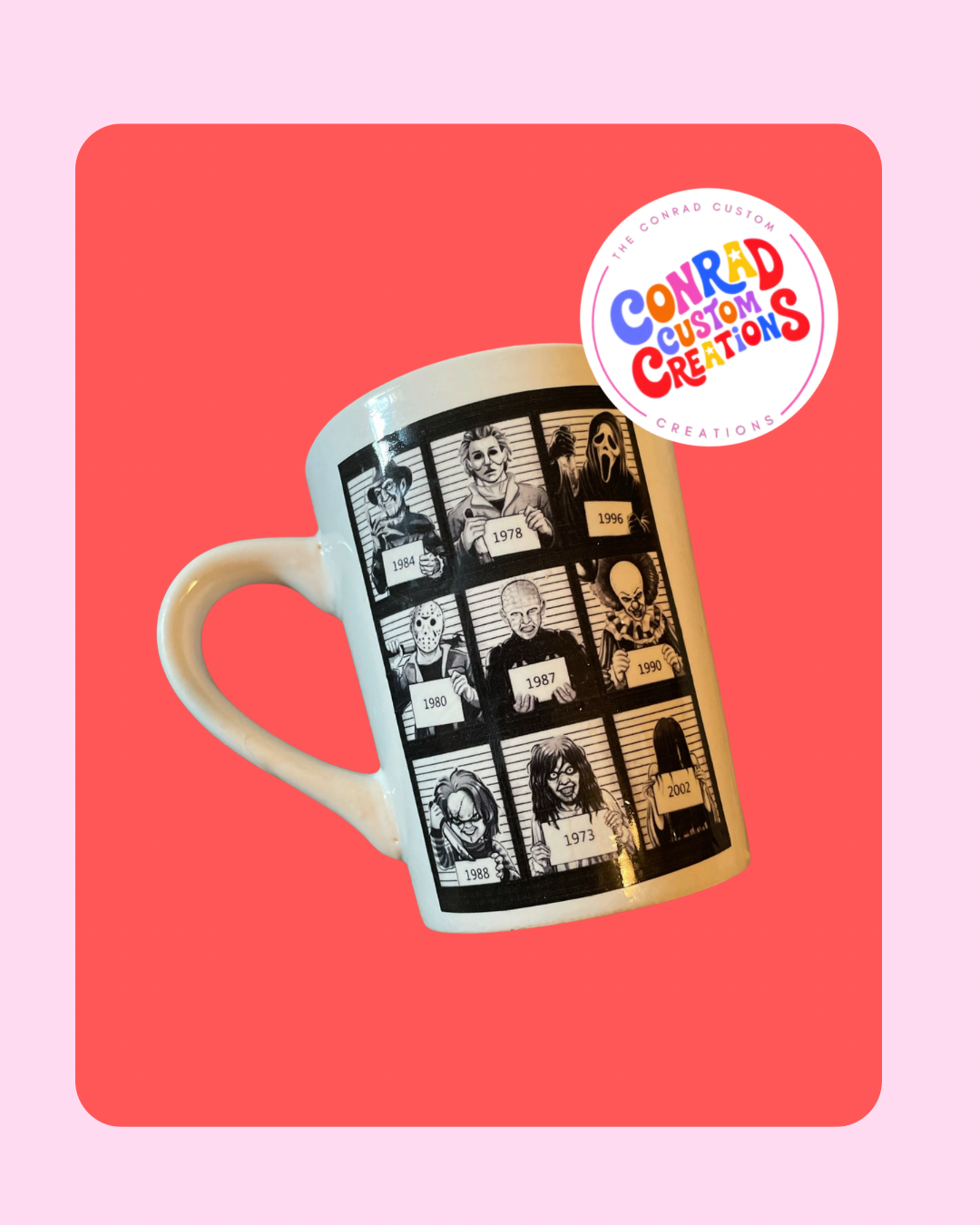 Whether you’re into slashers, gothic chills, paranormal vibes, or psychological thrillers, these custom horror mugs bring your favorite fright to every sip...your favorite horror slashes in JAIL.