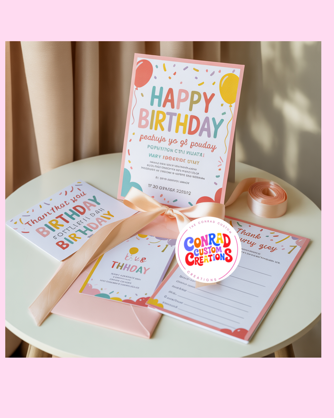 Make your party to the next level with our party-essentials bundle! Every piece is fully customizable to match your theme and make your celebration unforgettable. Included in the package: custom invitation design, birthday sign, thank you card design and one activity sheet. This bundle is perfect for birthdays, showers, or any special occasion. With Conrad Customs, planning a party has never been easier or more fun!